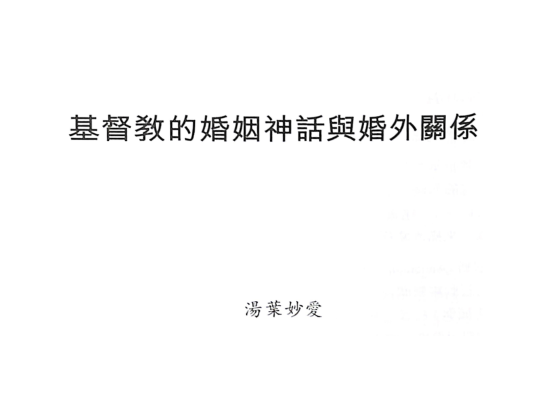 基督教的婚姻神話與婚外關係/湯葉妙愛