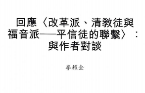 回應〈改革派、清教徒與福音派——平信徒的聯繫〉:與作者對談/李耀全