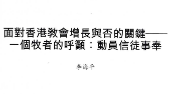 面對香港教會增長與否的關鍵——一個牧者的呼籲:動員信徒事奉/李海平