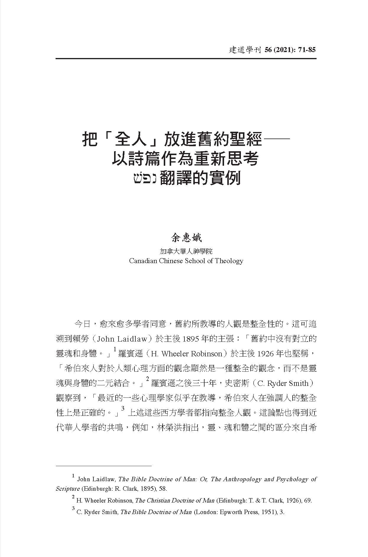 把「全人」放進舊約聖經—以詩篇作為重新思考נפשׁ翻譯的實例 / 余惠娥
