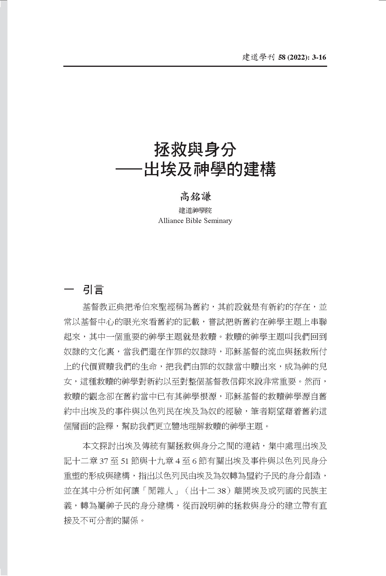 拯救與身分—出埃及神學的建構 / 高銘謙