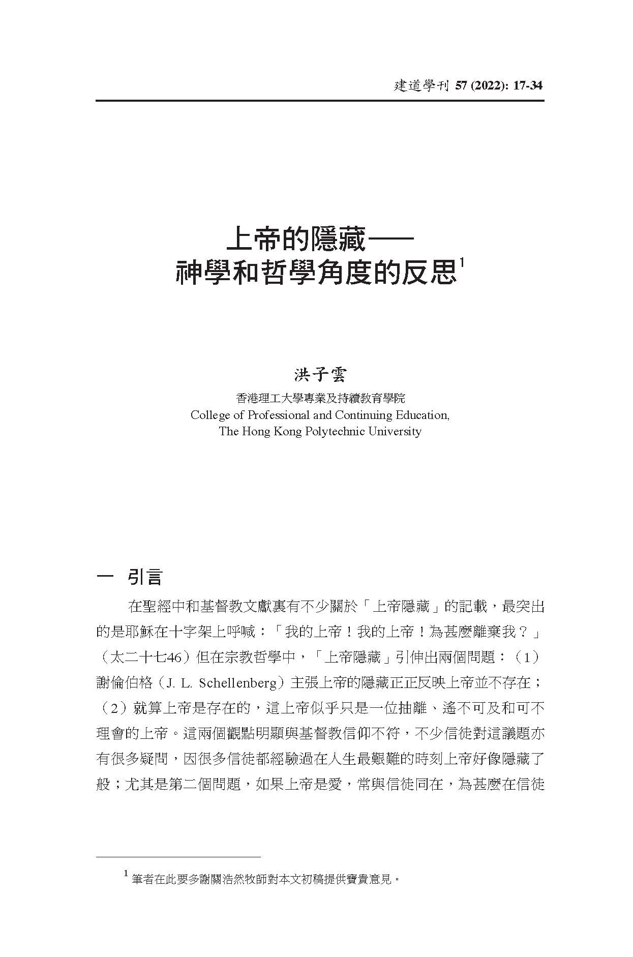 上帝的隱藏—神學和哲學角度的反思 / 洪子雲