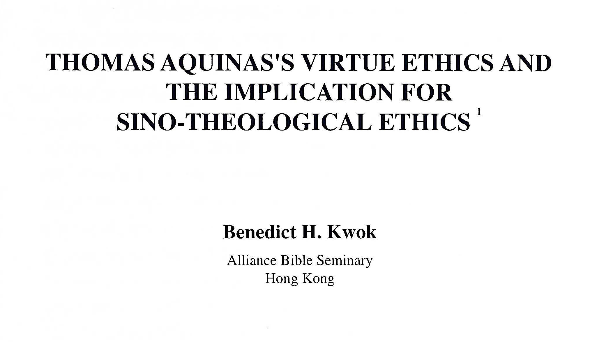 Thomas Aquinas’s Virtue Ethics And The Implication For Sino-Theological Ethics(多瑪斯·亞奎那的美德倫理對漢語神學倫理的意義) /郭鴻標