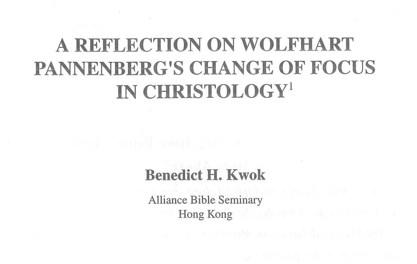 A Reflection On Wolfhart Pannenberg’s Change Of Focus In Christology(潘能伯格基督論重點轉移之批判性評估)/郭鴻標