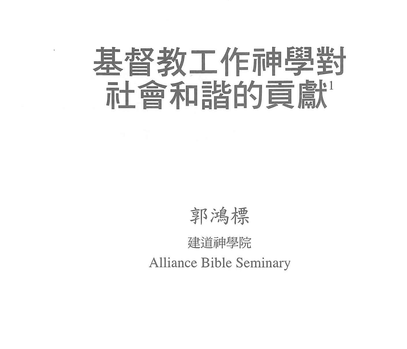 基督教工作神學對社會和諧的貢獻/郭鴻標