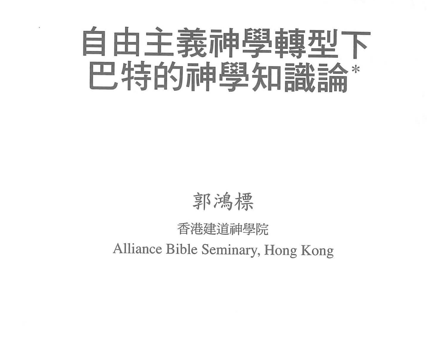 對「漢語神學」的神學反思 /郭鴻標