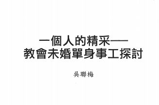 一個人的精采:教會未婚單身事工探討/吳聯梅