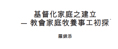 基督化家庭之建立——教會家庭牧養事工初探/羅錦添