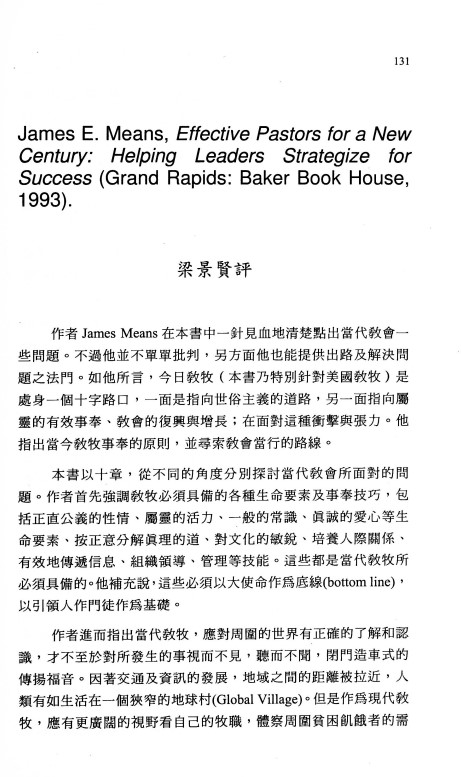 書評:《Effective Pastors for a New Century》/梁景賢