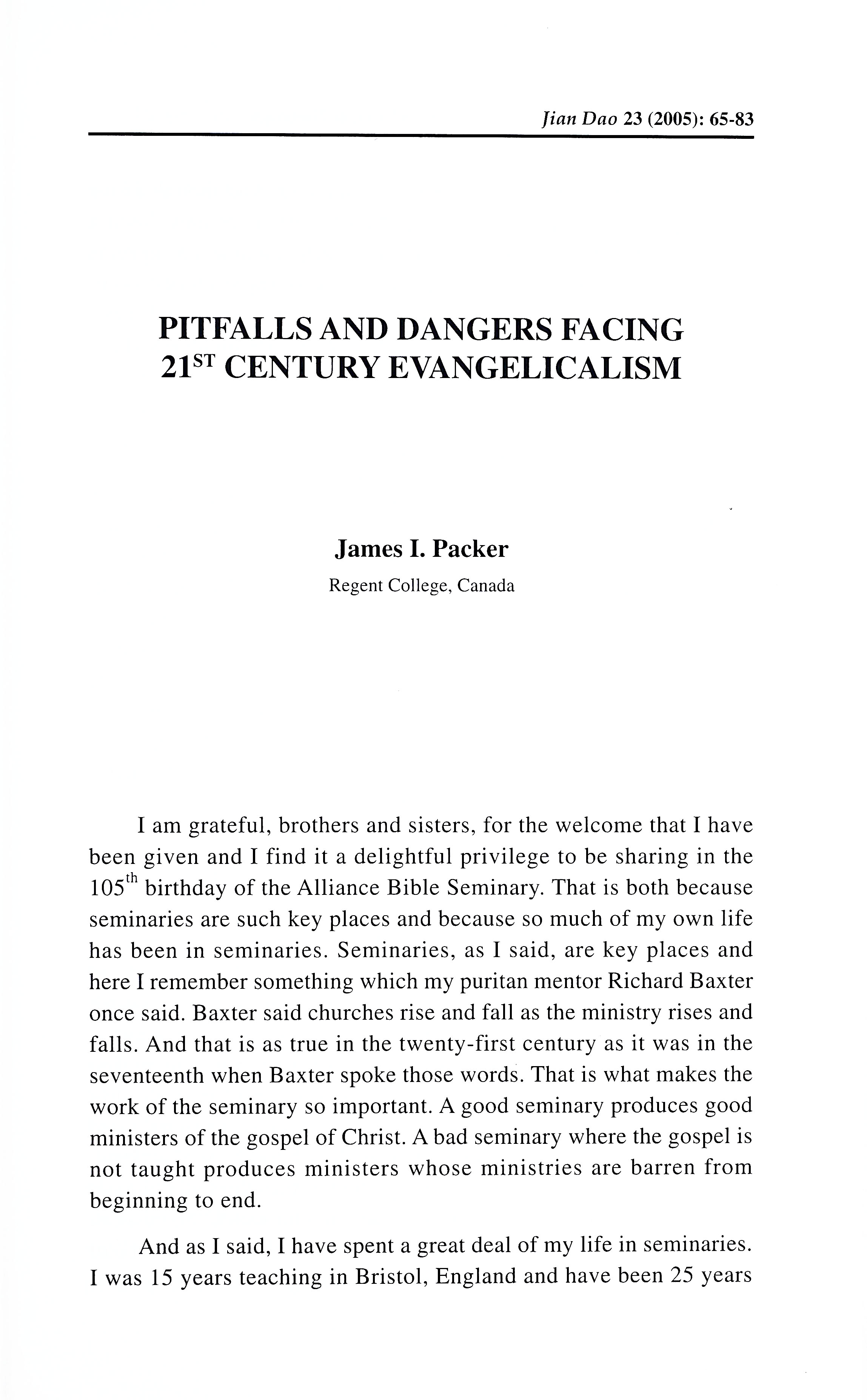 Pitfalls And Dangers Facing 21ST Century Evangelicalism[廿一世紀福音派面對的危機和陷阱﹙中譯﹚]/James I. Packer 巴刻