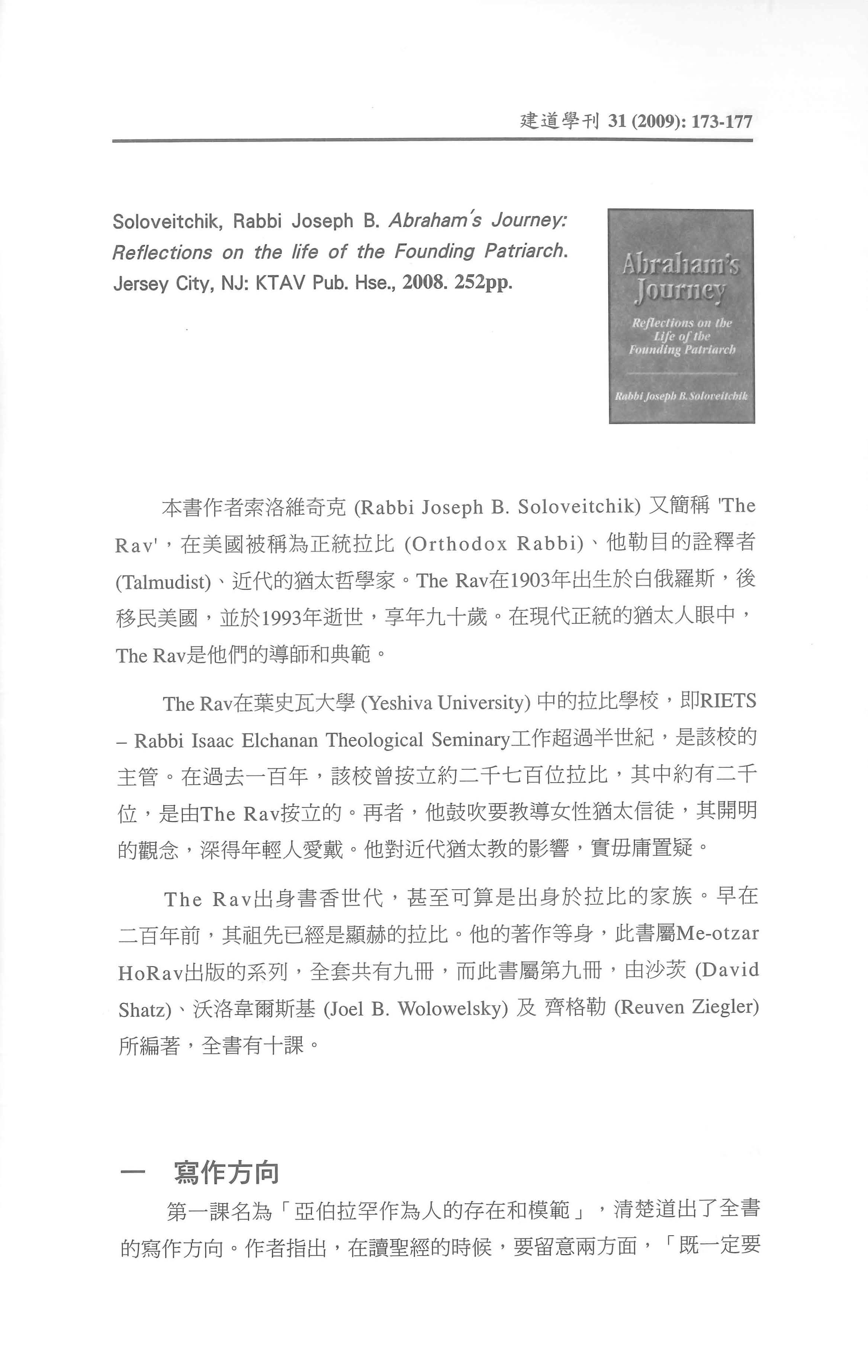 Soloveitchik, Rabbi Joseph B. Abraham's Journey: Reflections On The Life Of The Founding Patriarch/蔡式平