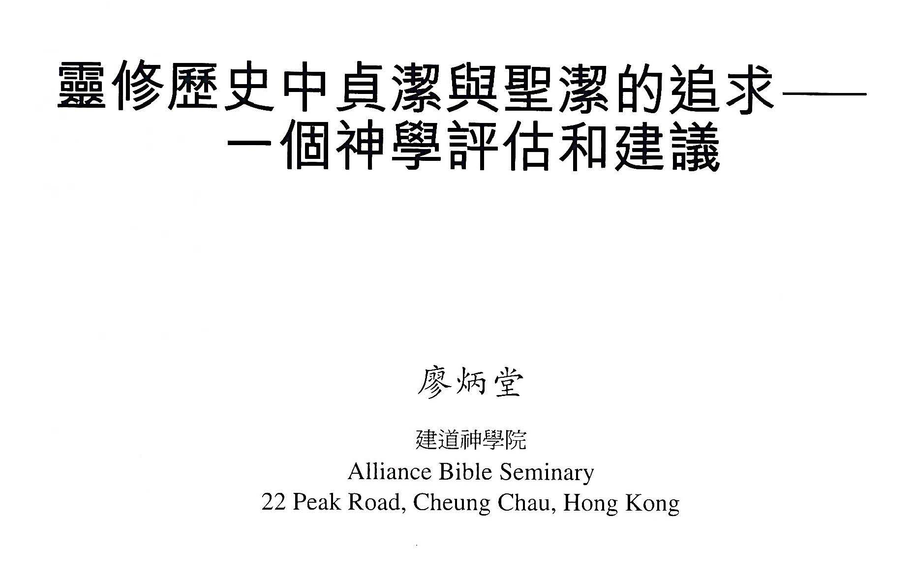 靈修歷史中貞潔與聖潔的追求──一個神學評估和建議/廖炳堂