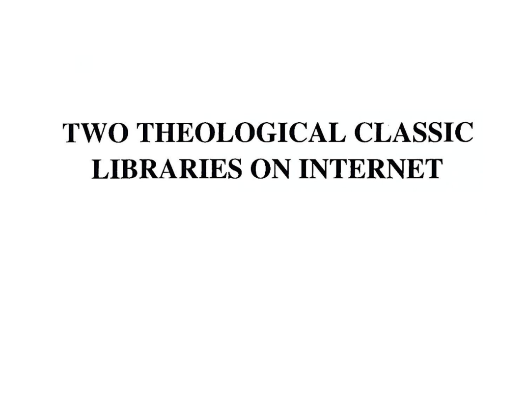 TWO THEOLOGICAL CLASSIC LIBRARIES ON INTERNET.(兩個網上經典神學圖書館。) / 李子楊