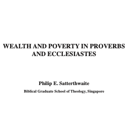 WEALTH AND POVERTY IN PROVERBS AND ECCLESIASTES/Philip E. Satterthwaite