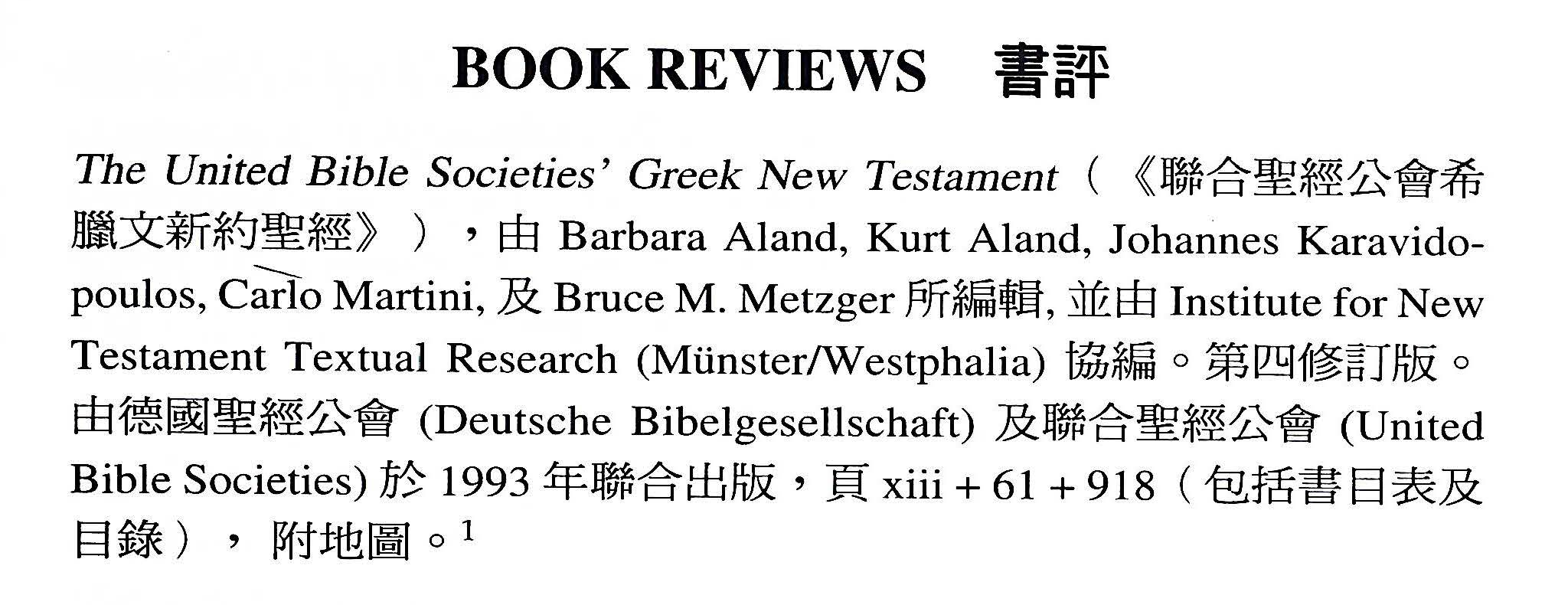 The United Bible Societies’ Greek New Testament, 4 th ed. 《聯合聖經公會希臘文新約聖經》。第四修訂版。 / 黃錫木