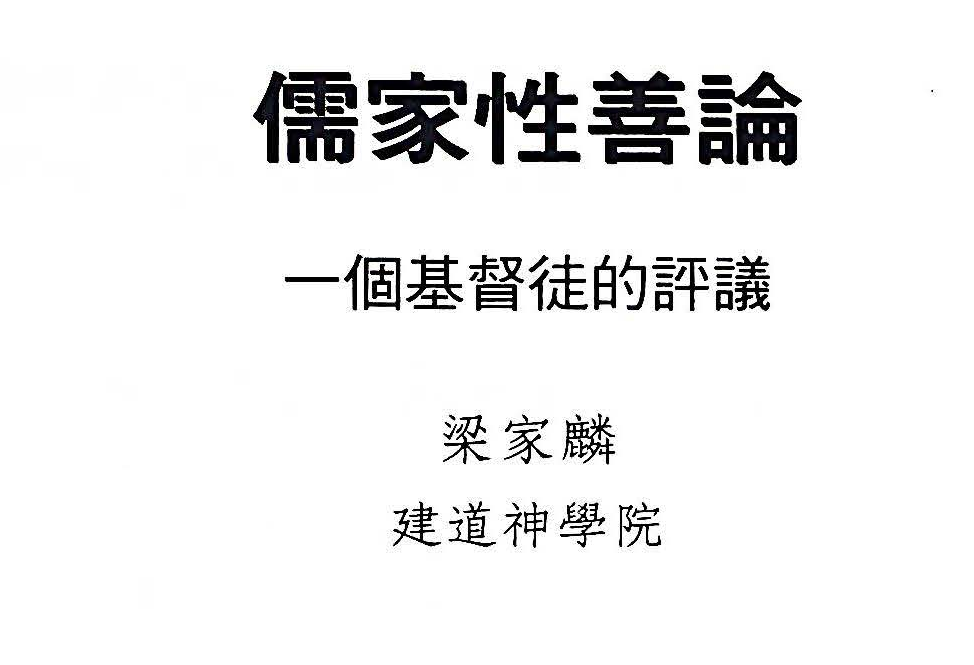 儒家性善論:一個基督徒的評議 / 梁家麟