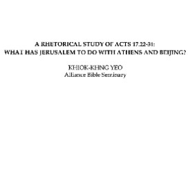 A Rhetorical Study Of ACTS 17:22-31: What Has Jerusalem To Do With Athens and Beijing? (使徒行傳十七章22至31節之修辭學──耶路撒冷、雅典、北京) / 楊克勤