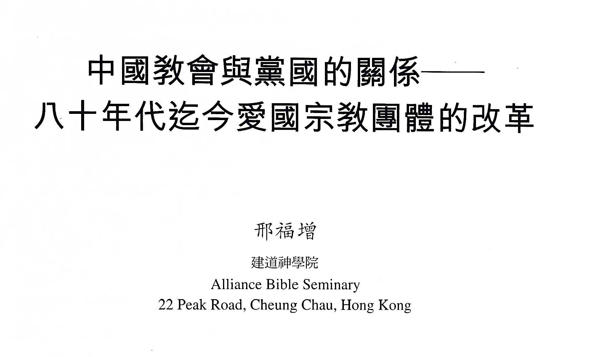 中國教會與黨國關係──八十年代迄今愛國宗教團體的改革 / 邢福增