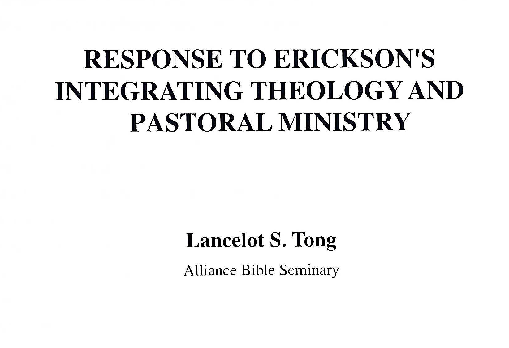 艾利克森提出神學與牧職可從三方面作整合:第一,神學學科與非神學學科的結合;第二,神學學科內的整合;第三,神學學科與牧職實踐的結合。他並提出第四個可能整合的範疇是理性與感性。…