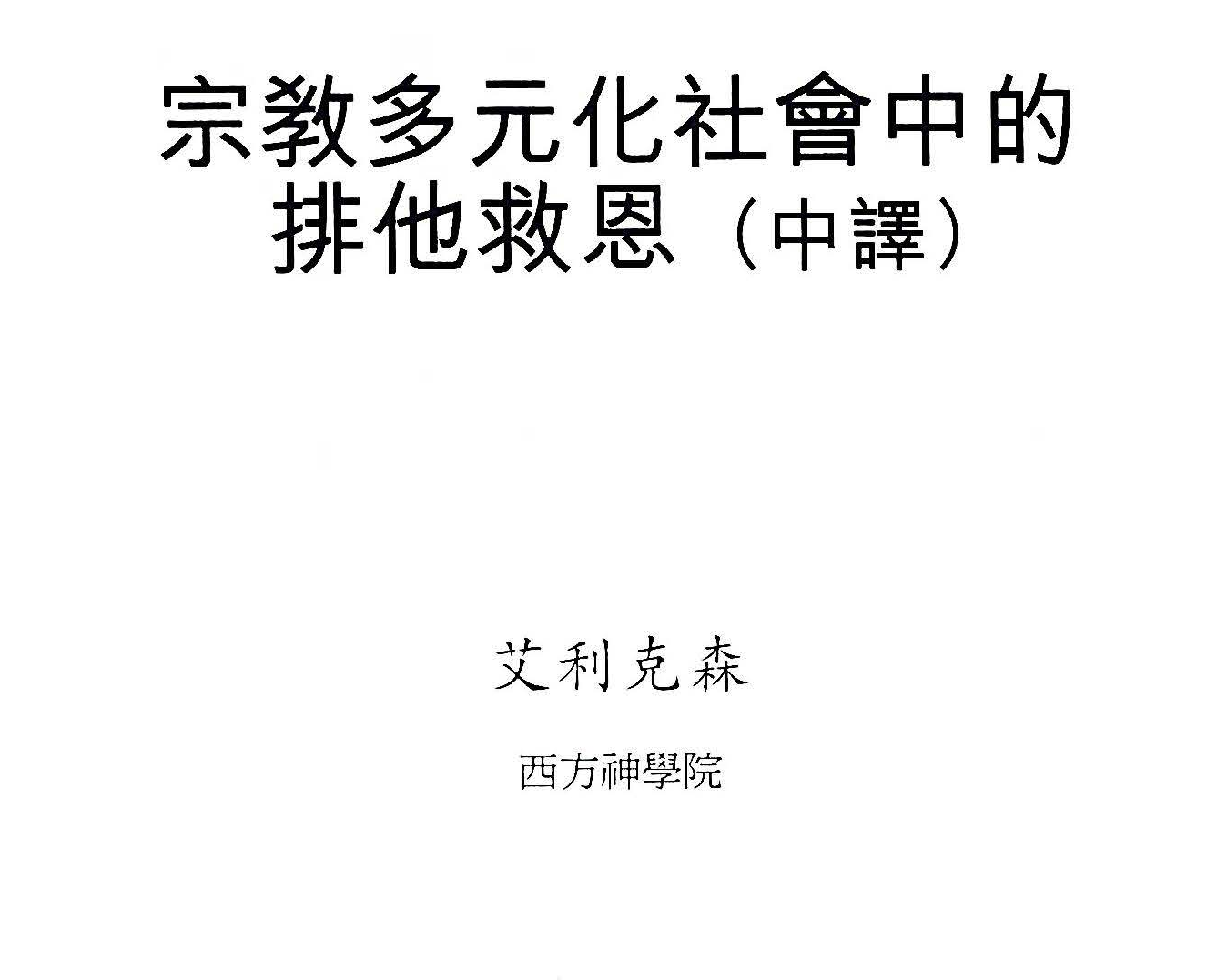 宗敎多元化社會中的排他救恩(中譯)- 湯紹源牧師/Millard J. Erickson 艾利克森