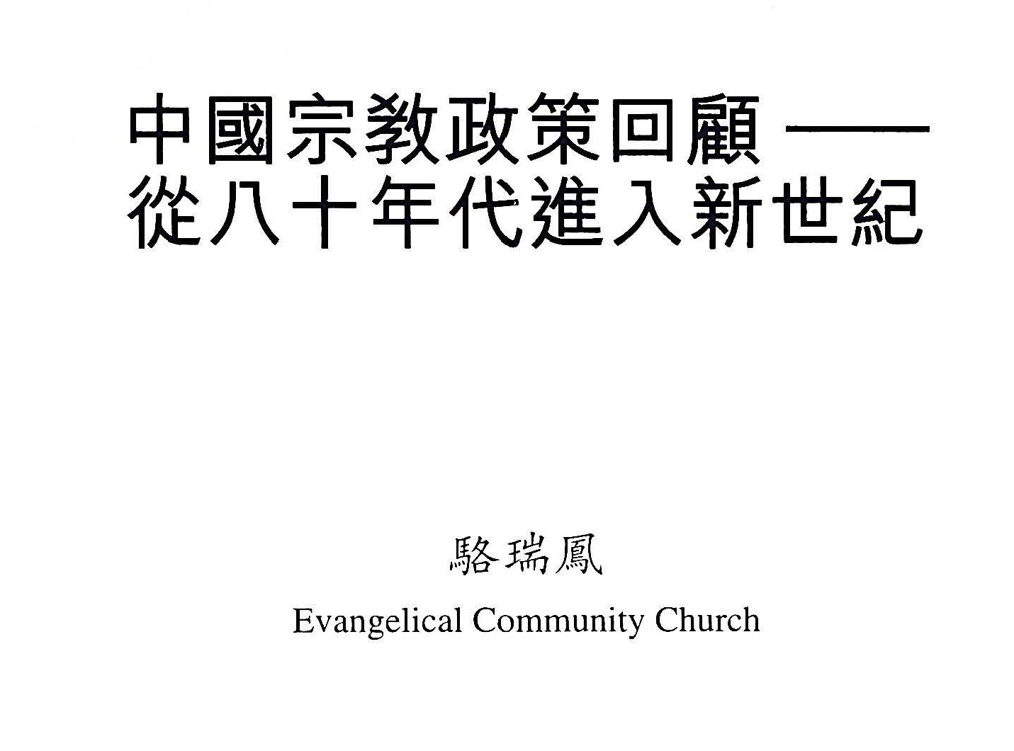 中國宗教政策回顧──從八十年代進入新世紀/駱瑞鳳