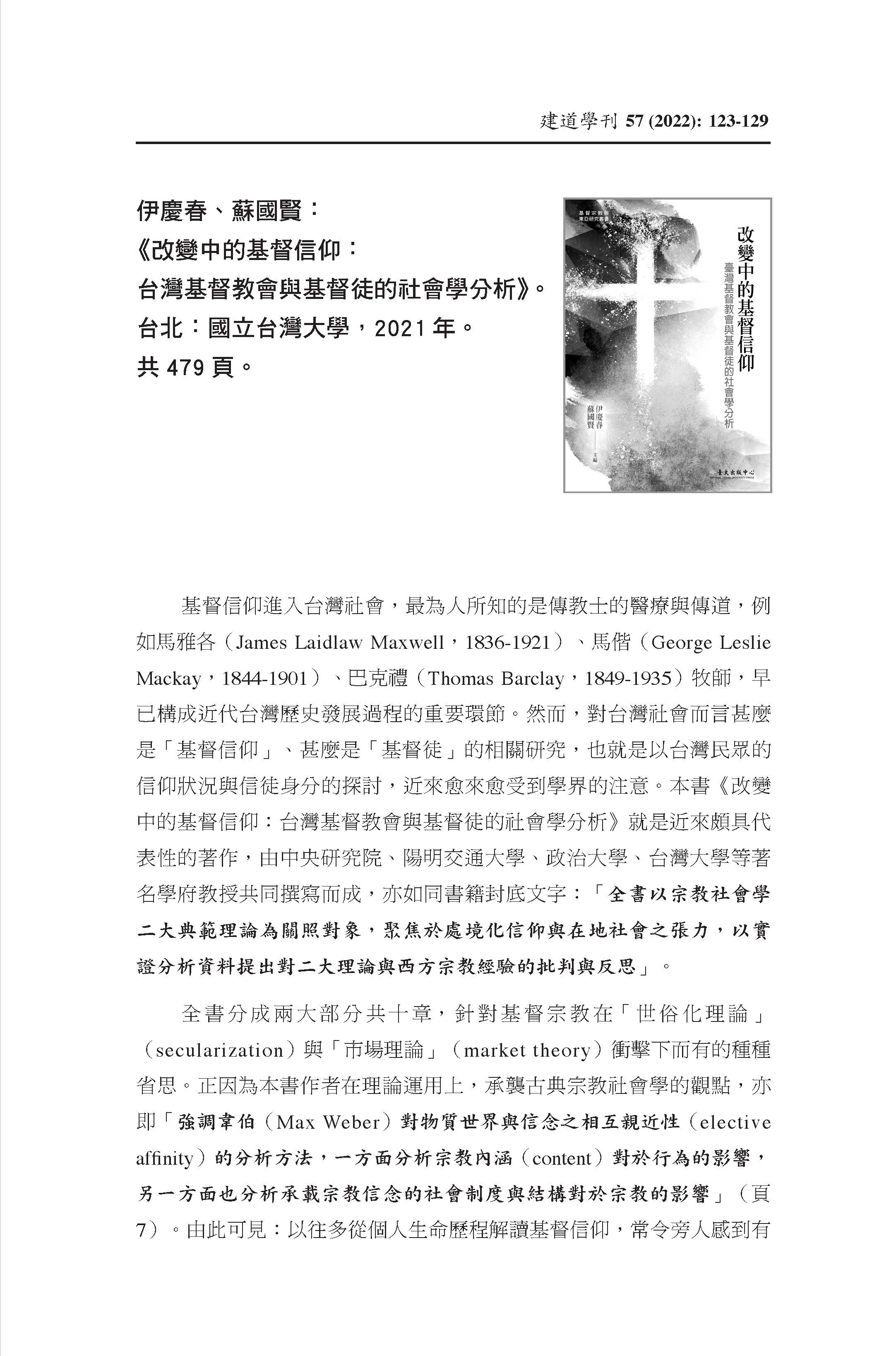 書評:《改變中的基督信仰:台灣基督教會與基督徒的社會學分析》 / 梁右典
