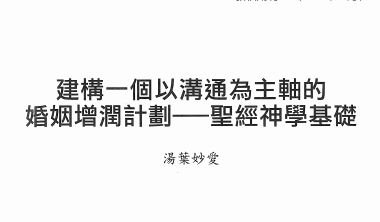 建構一個以溝通為主軸的婚姻增潤計劃——聖經神學基礎/湯葉妙愛