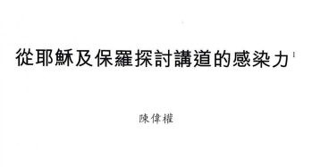從聖經可見,耶穌及保羅的講道充滿了能力,並且帶著權柄。本文從傳播、心理、文化,及聖靈四個不同角度,探討耶穌及保羅講道的感染力。耶穌與保羅講道感染力的共通點,從傳播角度看,他們都是得人信任的傳播者,有高尚的人格及道德操守。…