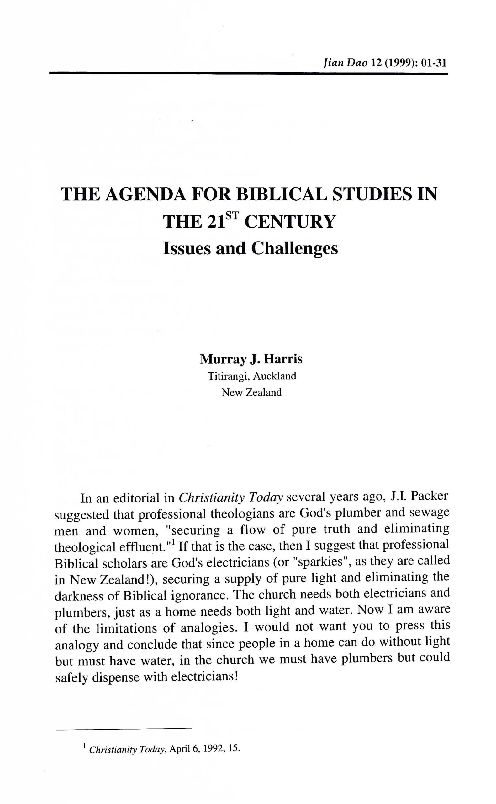 The Agenda For Biblical Studies In The 21St Century Issues And Challenges[二十一世紀聖經研究獻議(中譯)] / Murray J. Harris 夏理士