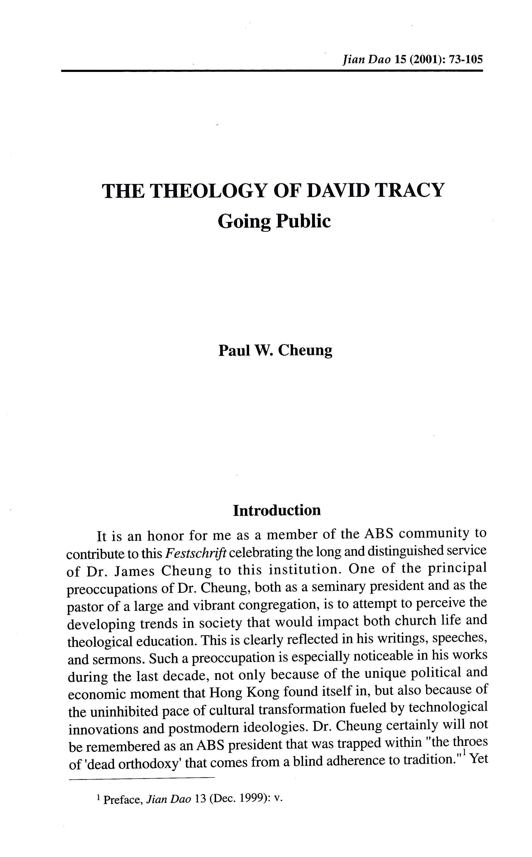 The Theology Of David Tracy Going Public(大衛特雷西的神學──公器神學)/ 張雲開